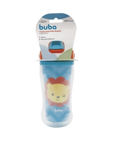 ACESSORIOS>INFANTIL>ACESÓRIOS>BUBA COPO PAREDE DUPLA ANIMAL FUN LEAO 280ML