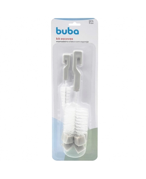 ACESSORIOS>INFANTIL>ACESSÓRIOS>BUBA ESCOVA MAMADEIRA E BICO C/ESPONJA CINZA