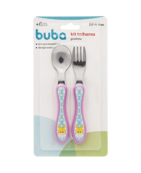 ACESSORIOS>INFANTIL>ACESSÓRIOS>BUBA KIT TALHERES ANIMAL FUN GIRAFA (GARFO E COLHER)