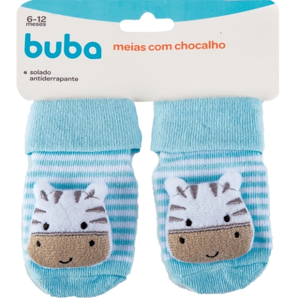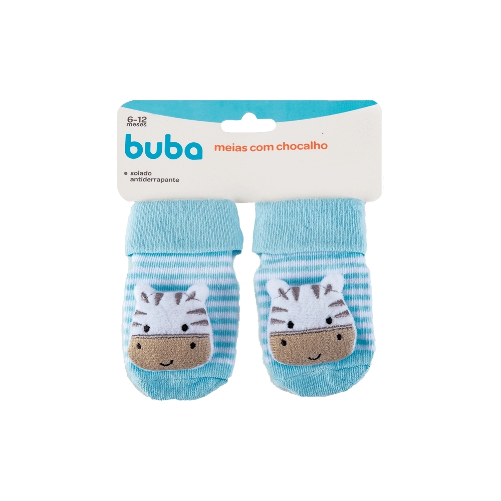 ACESSORIOS>INFANTIL>ACESSÓRIOS>BUBA MEIA ANTIDERRAPANTE C/CHOCALHO ZEBRINHA AZUL 6-12MESES