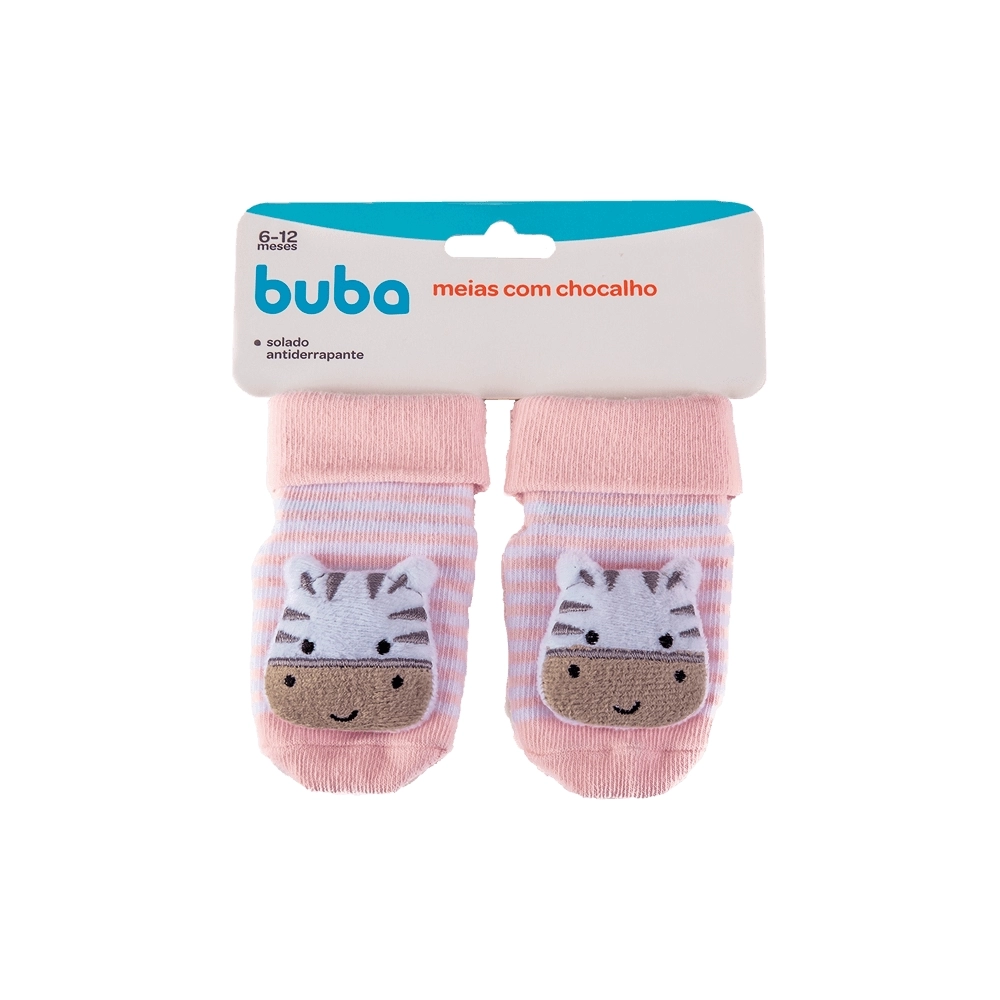 ACESSORIOS>INFANTIL>ACESSÓRIOS>BUBA MEIA ANTIDERRAPANTE C/CHOCALHO ZEBRINHA ROSA 6-12MESES