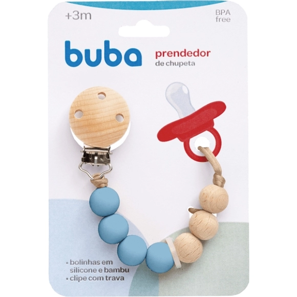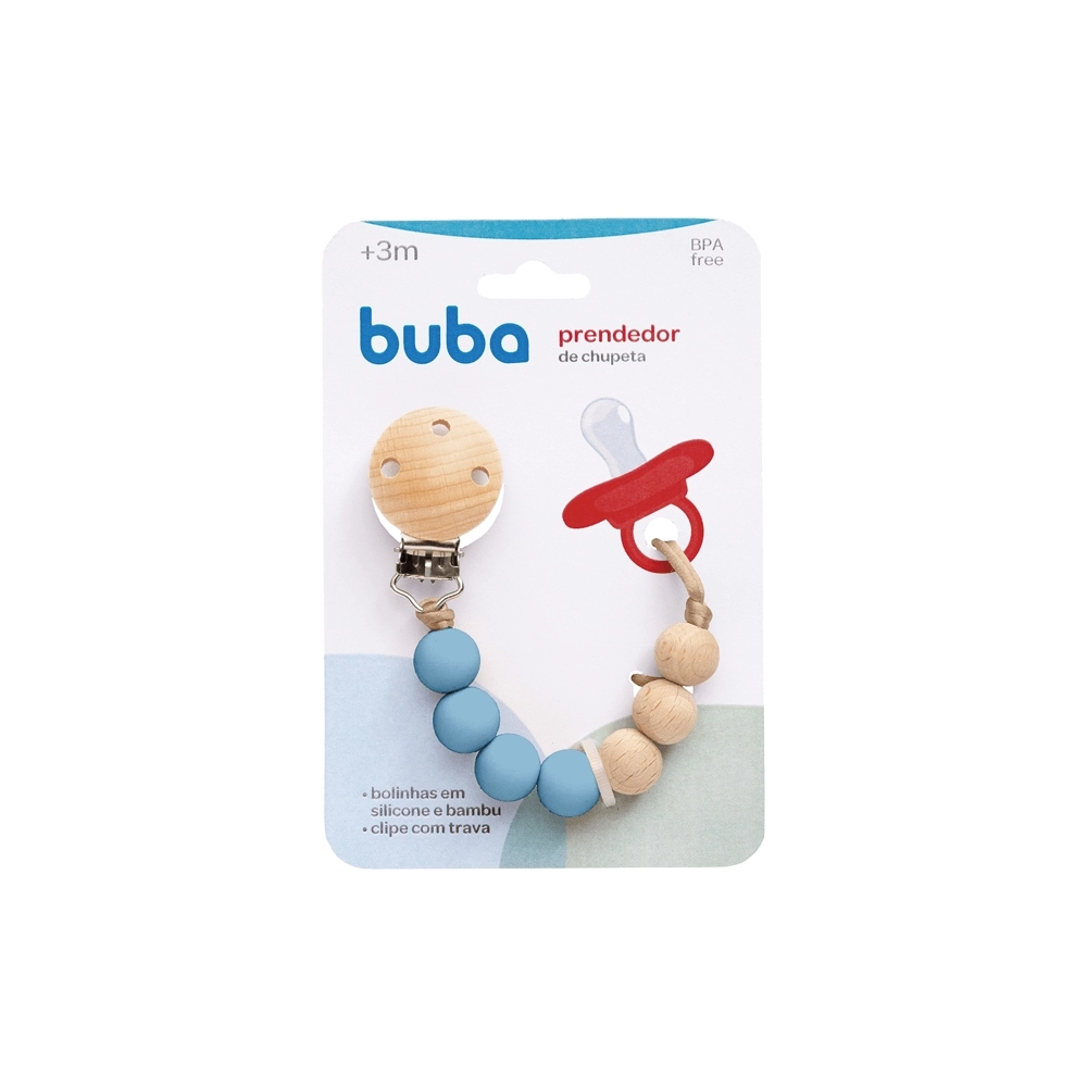 ACESSORIOS>INFANTIL>ACESSÓRIOS>BUBA PRENDEDOR DE CHUPETA SILICONE E BAMBU AZUL