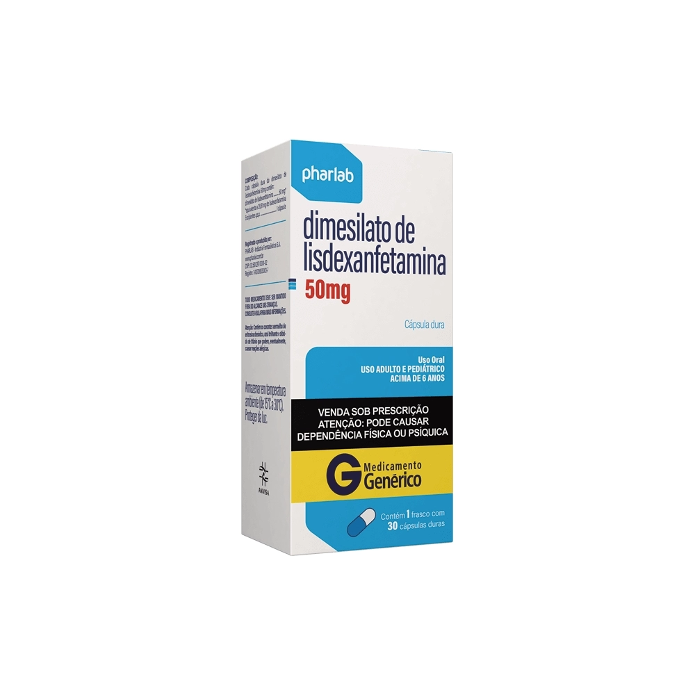 MEDICAMENTOS>CONTROLADOS>ANSIOLITICOS CONTROL>G.DIMESILATO DE LISDEXANFETAMINA 50MG 30CPS PHARLAB