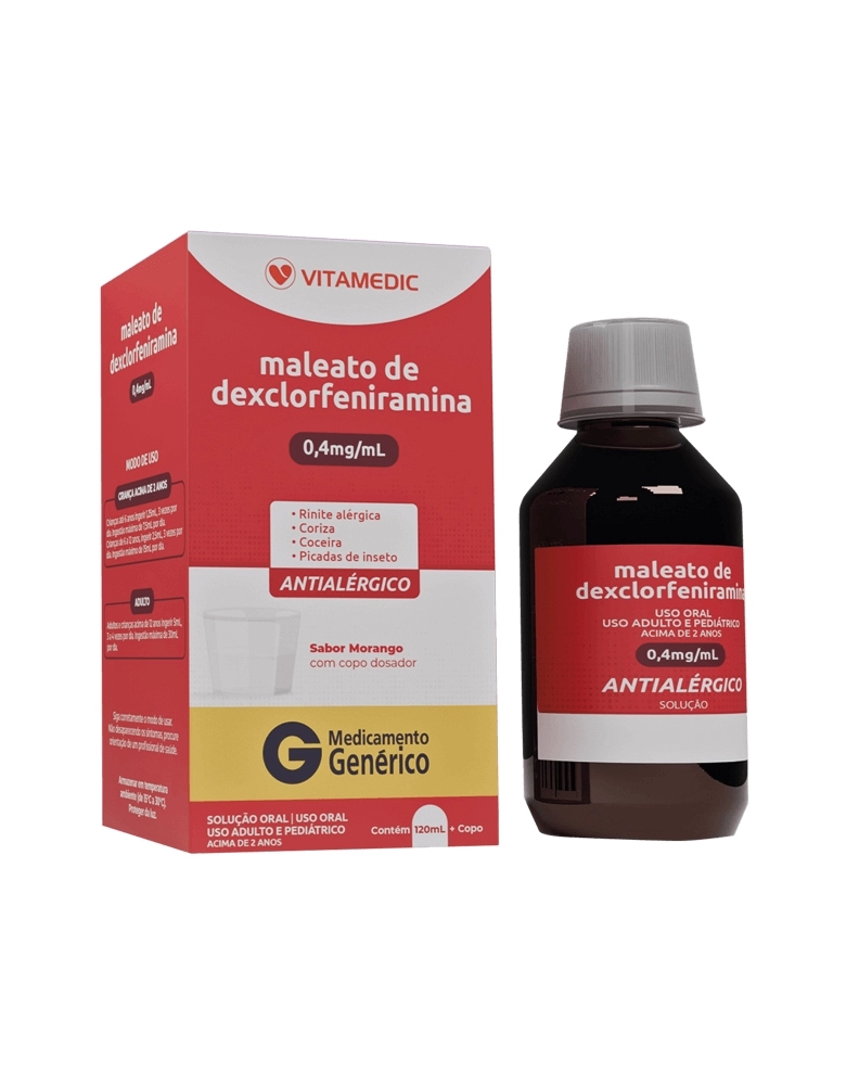 MEDICAMENTOS>GENERICO>ANTIALERGICO GENERI>G.DEXCLORFENIRAMINA XPE MORANGO 120ML VITAMEDIC