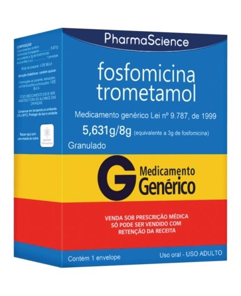 MEDICAMENTOS>GENERICO>ANTIBIOTICO GENERICO>G.FOSFOMICINA TROMETAMOL 5,631G/8G 1 ENV PHARMASCIENCE