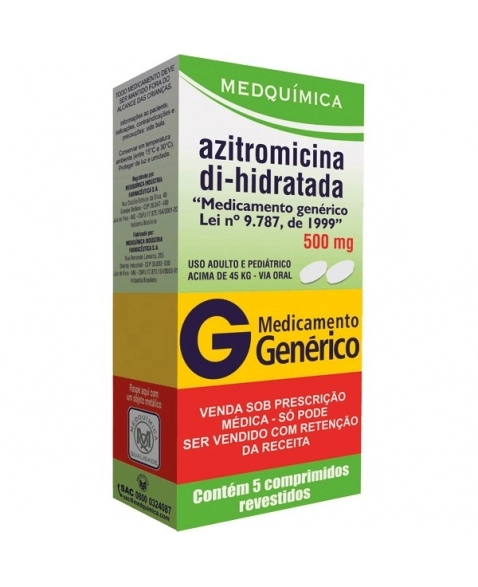 MEDICAMENTOS>SIMILAR>ANTIBIOTICO SIMILAR>G.AZITROMICINA 500MG 5CPR MEDQUIMICA