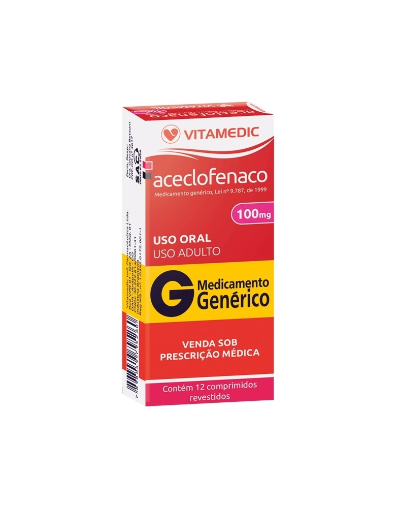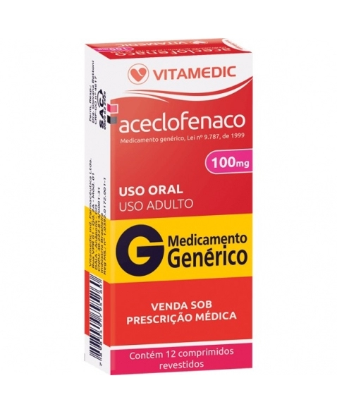 MEDICAMENTOS>GENERICO>ANTIINFLAMATORIO GEN>G.ACECLOFENACO 100MG 12CPR VITAMEDIC