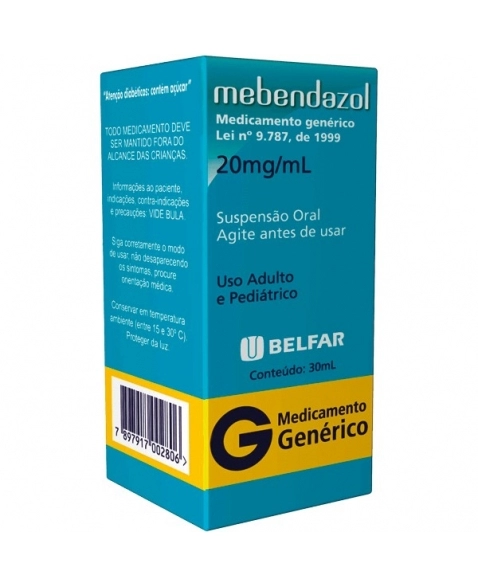 MEDICAMENTOS>GENERICO>ANTIPARASITÁRIO GENE>G.MEBENDAZOL SUSP 20MG 30ML BELFAR