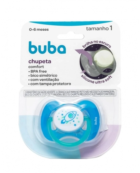ACESSORIOS>INFANTIL>CHUPETA>BUBA CHUPETA Nº1 FOGUETE NOTURNA C/TAMPA PROTETORA
