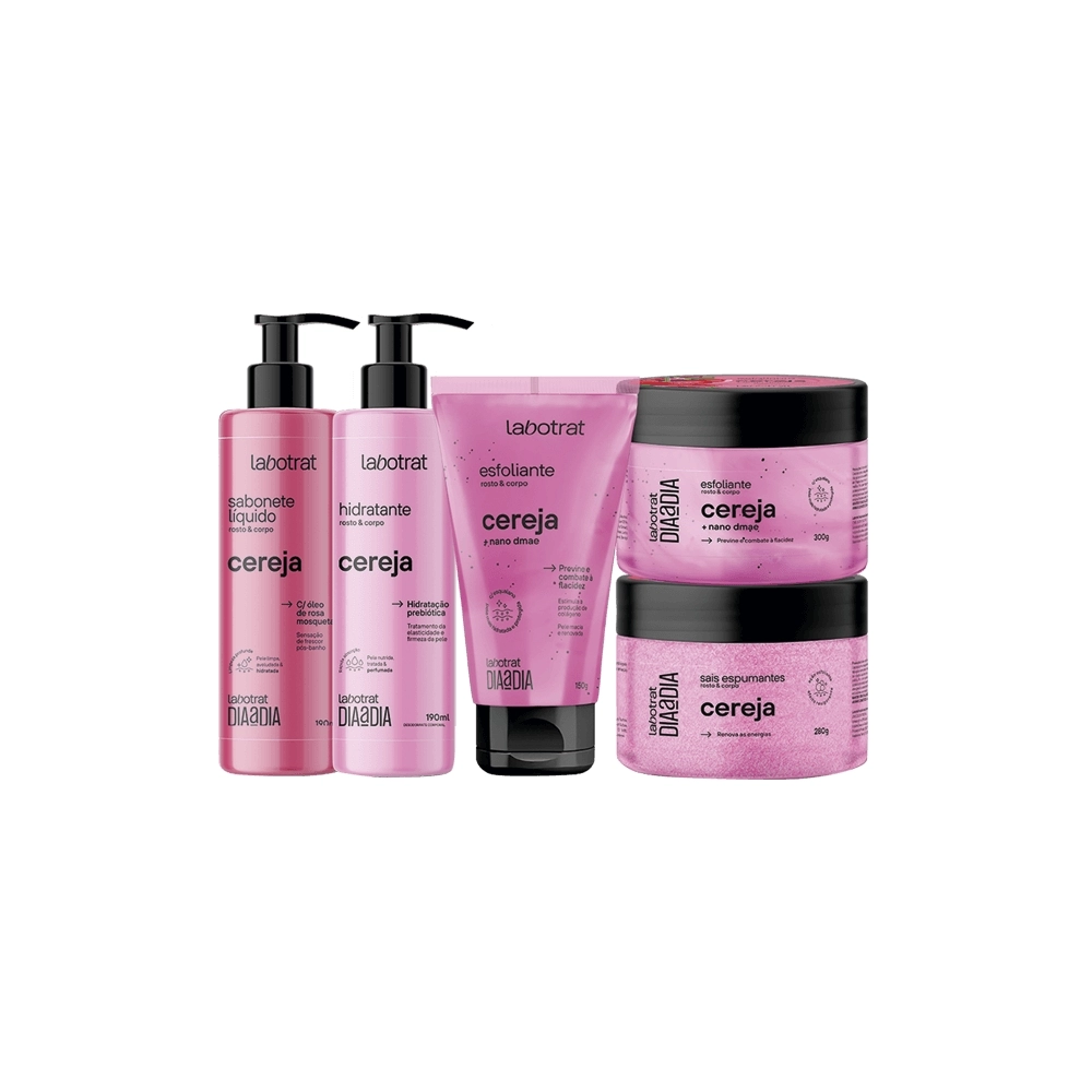HPC>PERFUMARIA>CREMES CORPORAIS>KIT BANHO DIA DIA CEREJA (SABON LIQ,2 ESFOL,HIDRAT,SAIS) LABOTRAT
