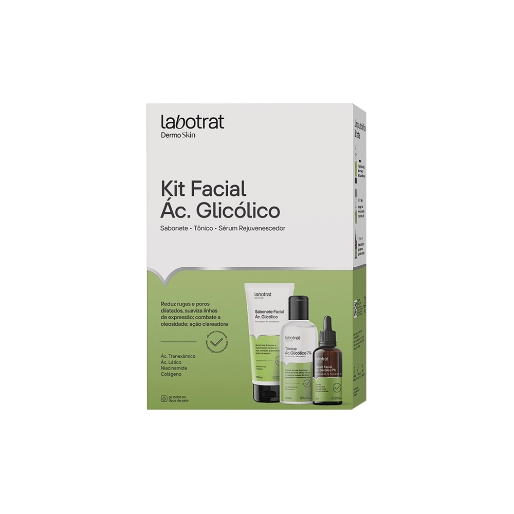 HPC>PERFUMARIA>DERMOCOSMÉTICOS>KIT FACIAL AC GLICOLICO DERMO SKIN (SABO/TONI/SERUM REJUVEN) LABOTRAT