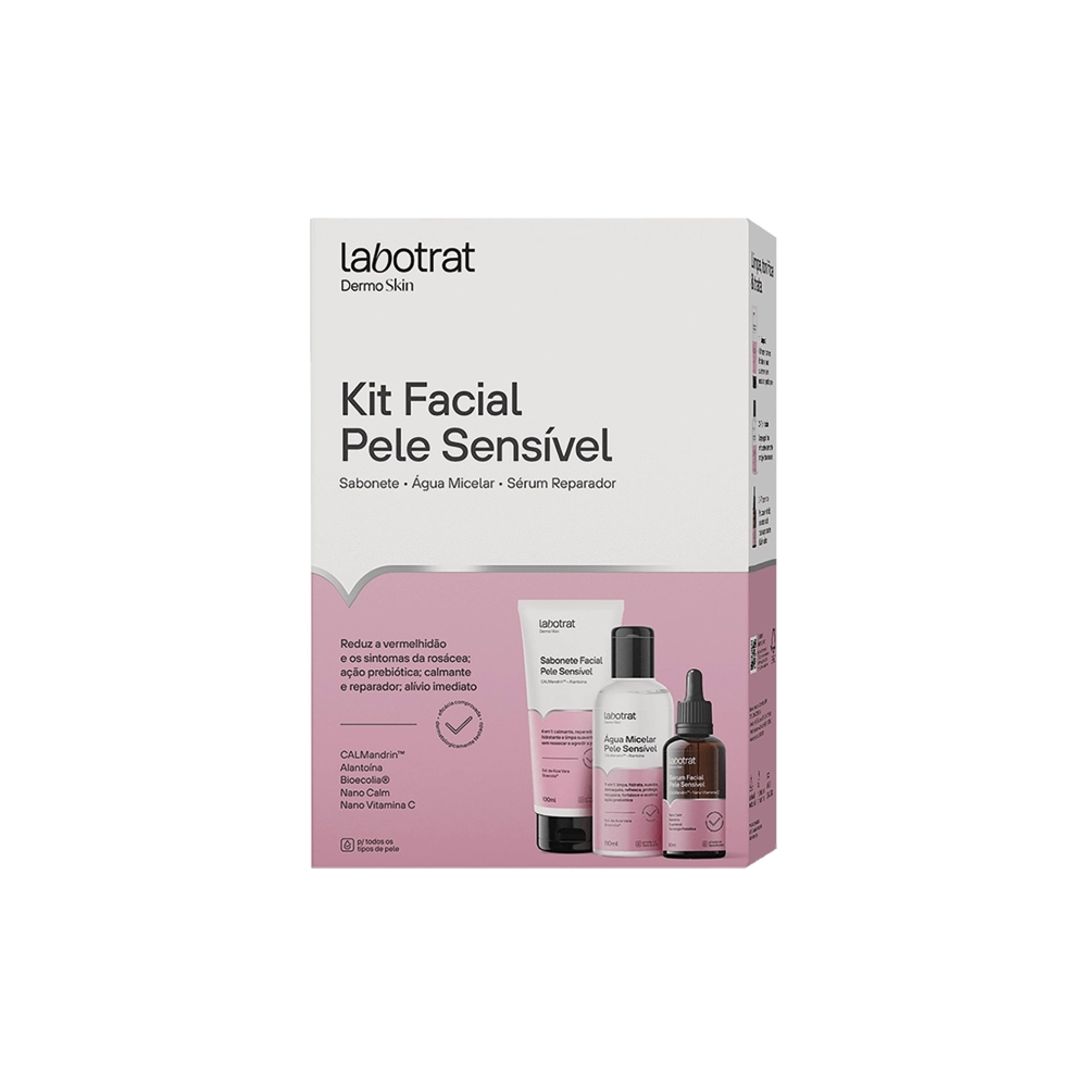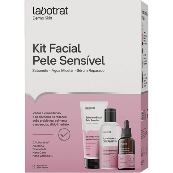 HPC>PERFUMARIA>DERMOCOSMÉTICOS>KIT FACIAL PELE SENSIVEL DERMO SKIN (SABO/AGUA MICE/SERUM REPARADOR) LABOTRAT