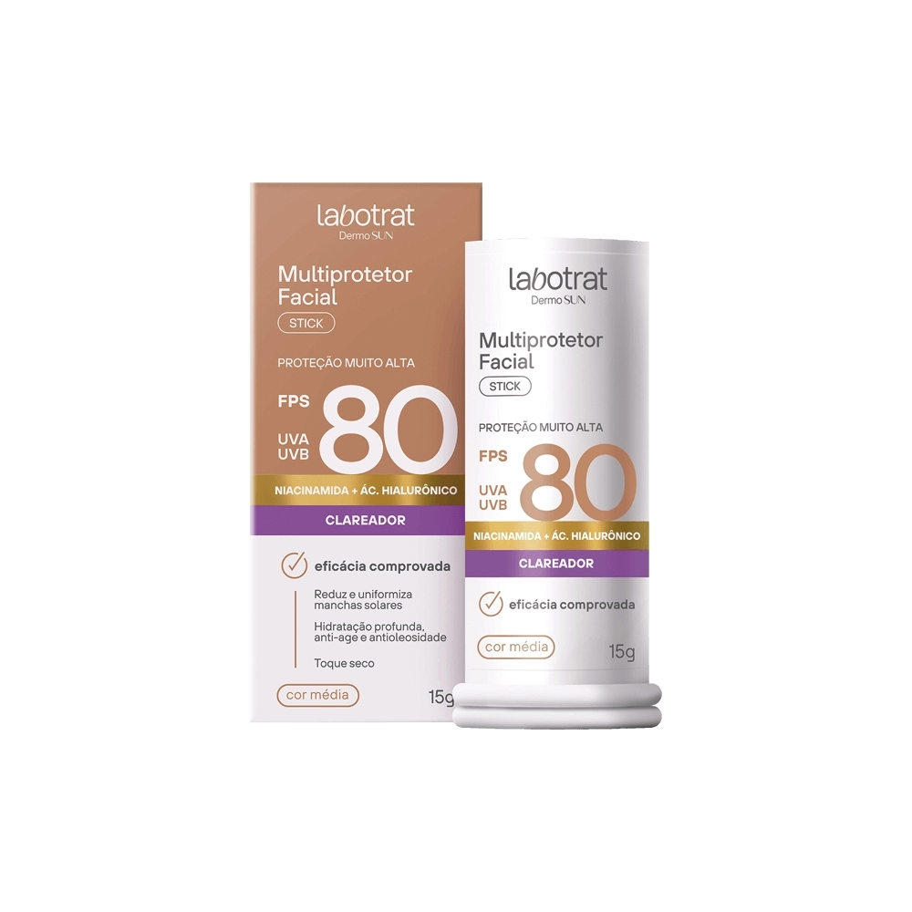 HPC>PERFUMARIA>DERMOCOSMÉTICOS>MULTIPROTETOR FACIAL STICK FPS80 CLAREADOR COR BEGE MEDIO 15G LABOTRAT