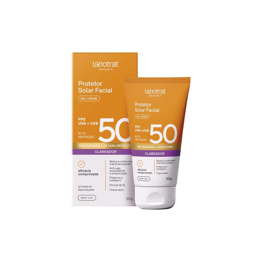HPC>PERFUMARIA>DERMOCOSMÉTICOS>PROTETOR SOLAR FACIAL GEL CREME FPS50 CLAREADOR SEM COR 50G LABOTRAT