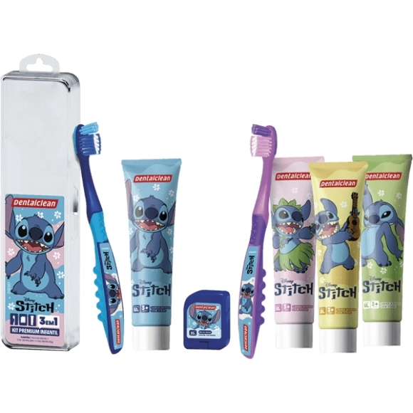 ACESSORIOS>OUTROS>HIGIENE BUCAL>ESTOJO INFANTIL STITCH ( ESCOVA+GEL DENTAL 50G+FIO 20MT ) DENTALCLEAN