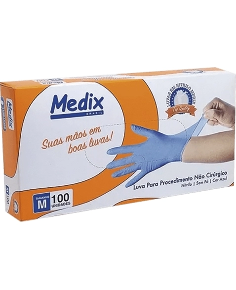 ACESSORIOS>OUTROS>HOSPITALAR>LUVA NITRILICA S/PO AZUL TAM M 100UN MEDIX