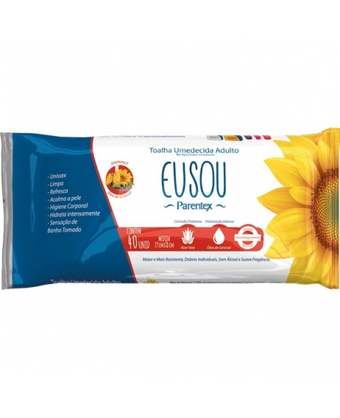 ACESSORIOS>INFANTIL>LENÇO UMEDECIDO>EU SOU TOALHA UMED ADULTO OLEO GIRASSOL 40UND PARENTEX