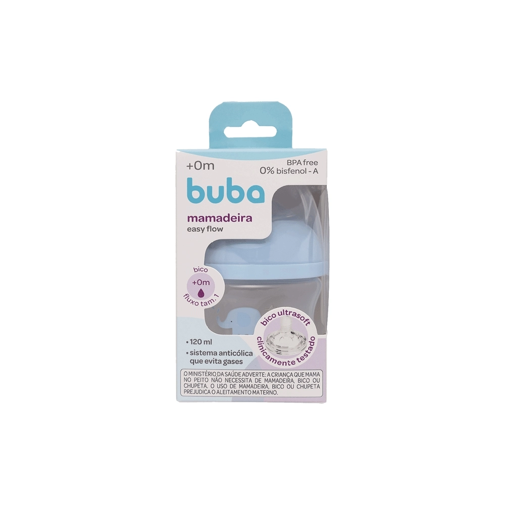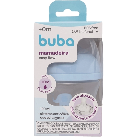 ACESSORIOS>INFANTIL>MAMADEIRA>BUBA MAMADEIRA EASY FLOW ELEFANTE AZUL 120ML