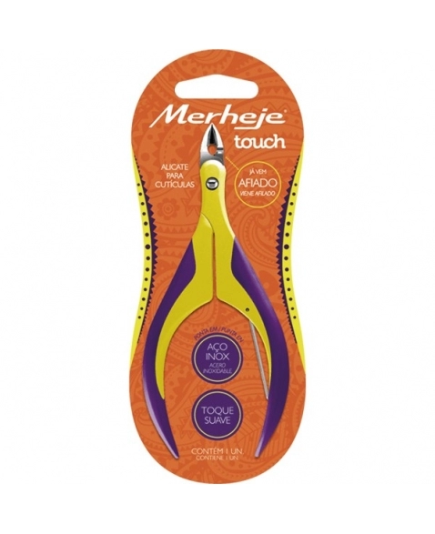 ACESSORIOS>OUTROS>MANICUROS/PEDICUROS>ALICATE P/ CUTICULAS TOUCH AMARELO/VIOLET MERHEJE