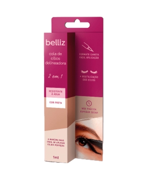 HPC>PERFUMARIA>MAQUIAGEM>COLA DE CILIOS DELINEADORA PRETA 2 EM 1 BELLIZ