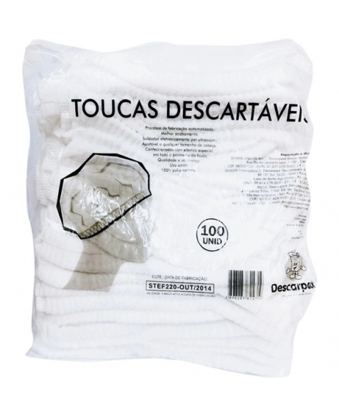 ACESSORIOS>OUTROS>OUTROS ACESSORIOS>TOUCA DESCARTAVEL BRANCA 100UND DESCARPACK