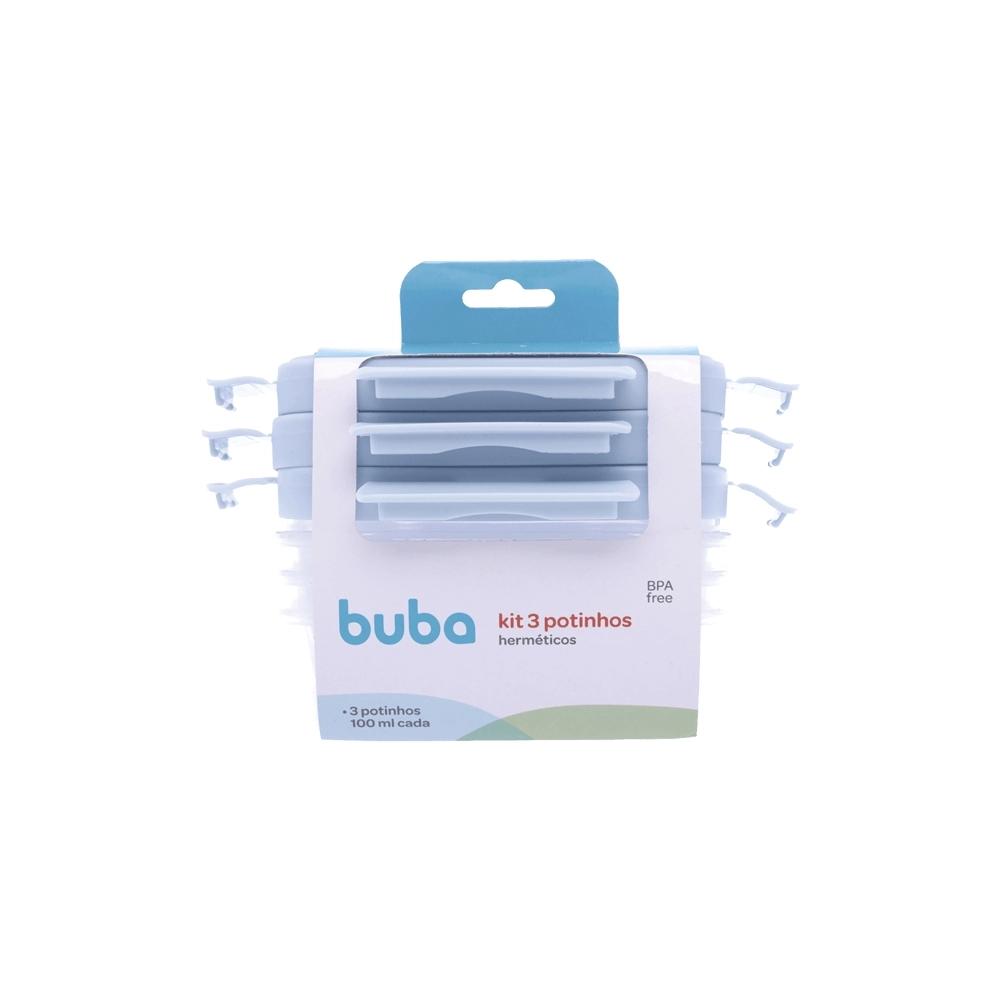 ACESSORIOS>INFANTIL>OUTROS>BUBA KIT 3 POTINHOS HERMETICOS AZUL 100ML