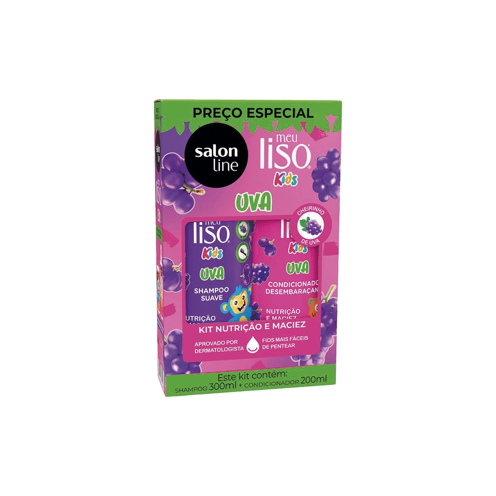 HPC>PERFUMARIA>PRODUTO CAPILAR>MEU LISO KIDS KIT SHAMP/CONDIC UVA 300ML SALON LINE