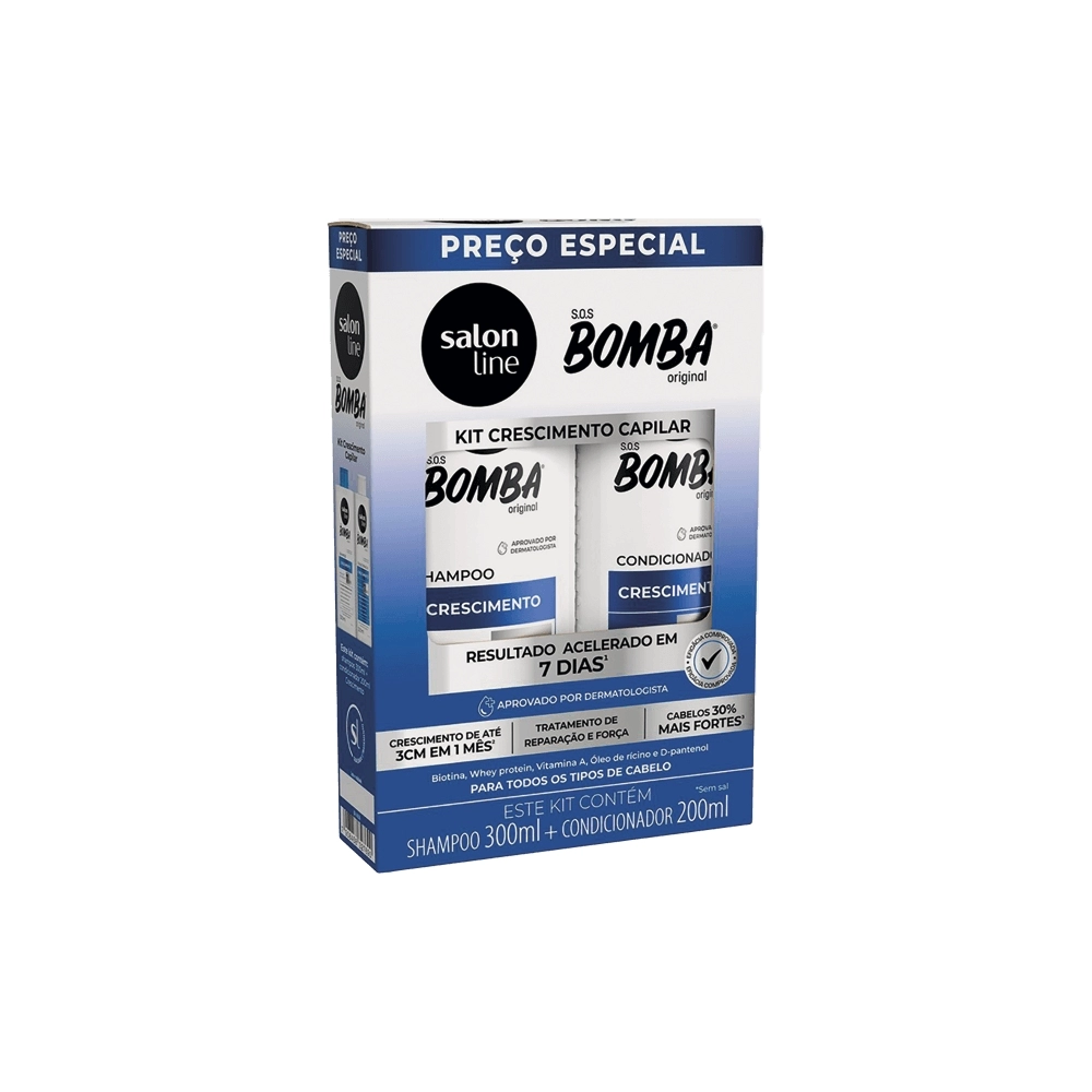 HPC>PERFUMARIA>PRODUTO CAPILAR>SOS BOMBA KIT SHAMP/CONDIC CRESCIMENTO 300ML SALON LINE