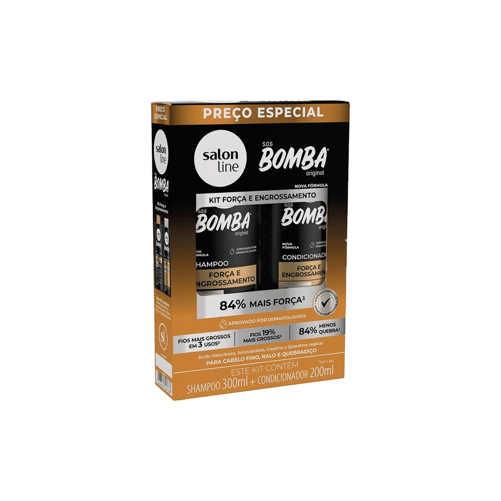 HPC>PERFUMARIA>PRODUTO CAPILAR>SOS BOMBA KIT SHAMP/CONDIC FORCA E ENGROSSAMENTO 300ML SALON LINE