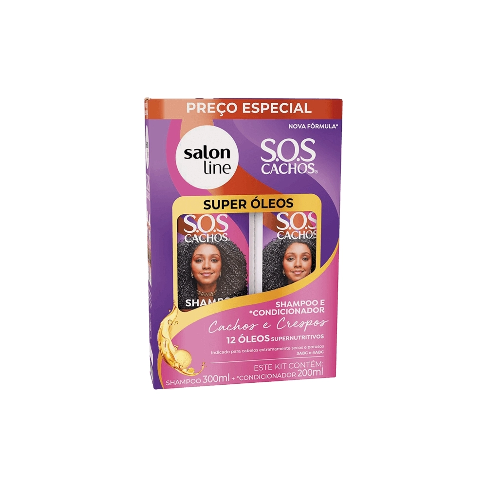 HPC>PERFUMARIA>PRODUTO CAPILAR>SOS CACHOS KIT SHAMP/CONDIC SUPER OLEOS 300ML SALON LINE