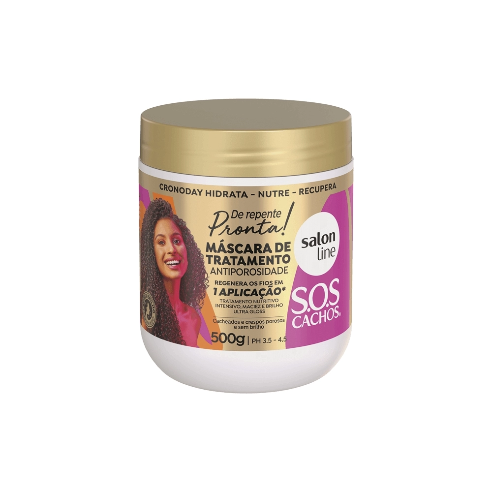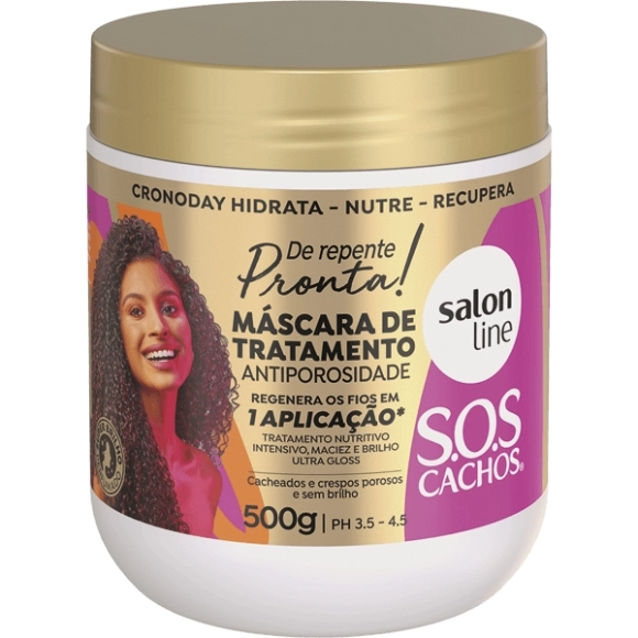 HPC>PERFUMARIA>PRODUTO CAPILAR>SOS CACHOS MASCARA ANTIPOROSIDADE DE REPENTE PRONTA 500GR SALON LINE