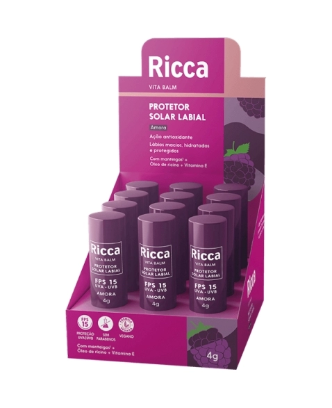 Princ. Ativo: RICCA PROTETOR LABIAL AMORA FPS15 BLISTER C/12UN