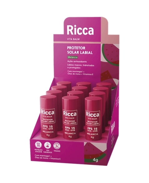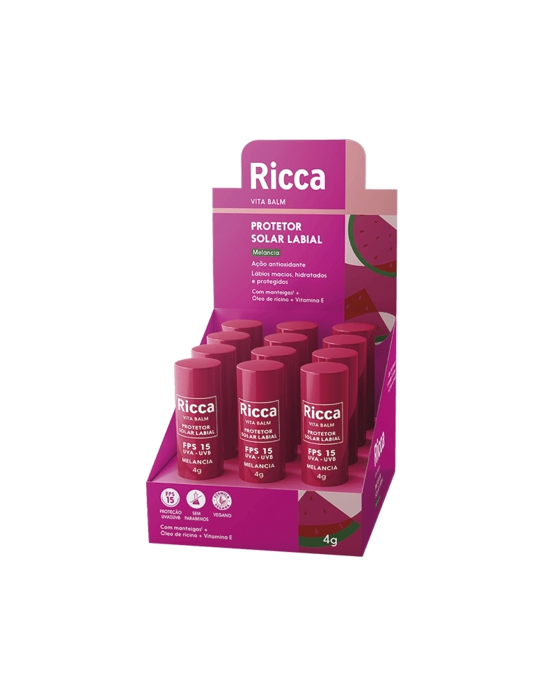 Princ. Ativo: RICCA PROTETOR LABIAL MELANCIA FPS15 BLISTER C/12UN