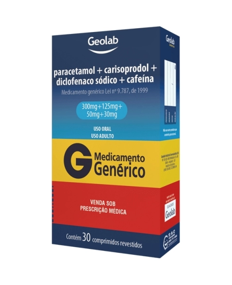 MEDICAMENTOS>GENERICO>RELAXANTE MUSC GENER>G.PARA+CARIS+DICL SOD+CAF 300+125+50+30MG 30CPR GEOLAB
