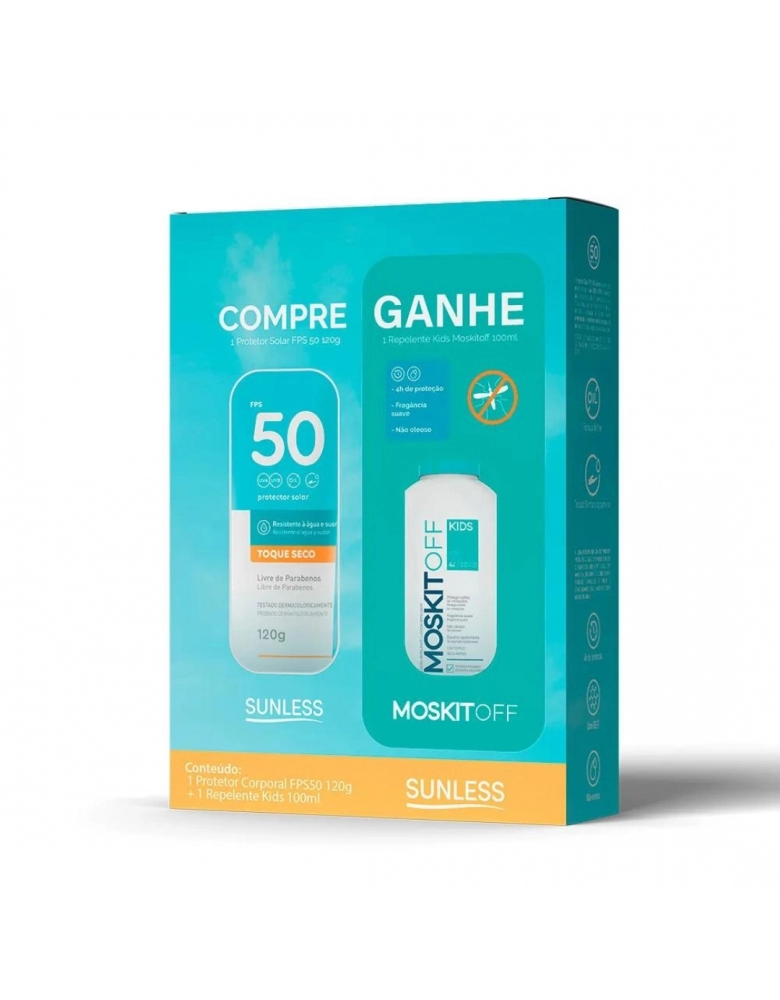 HPC>PERFUMARIA>SUNLESS>SUNLESS KIT PROT SOLAR CORPORAL FPS50 120GR+REPELENTE KIDS FARMAX