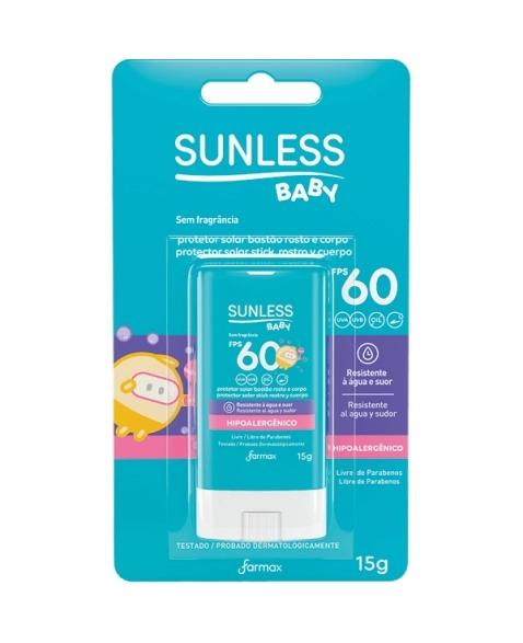 HPC>PERFUMARIA>SUNLESS>SUNLESS PROT SOLAR BABY BASTAO FPS60 15GR FARMAX