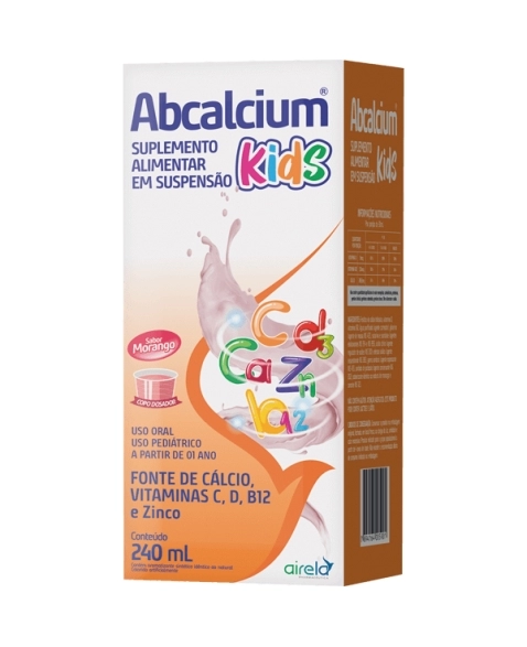 ACESSORIOS>OUTROS>SUPLENTO ALIMENTAR>ABCALCIUM KIDS MORANGO 240ML AIRELA