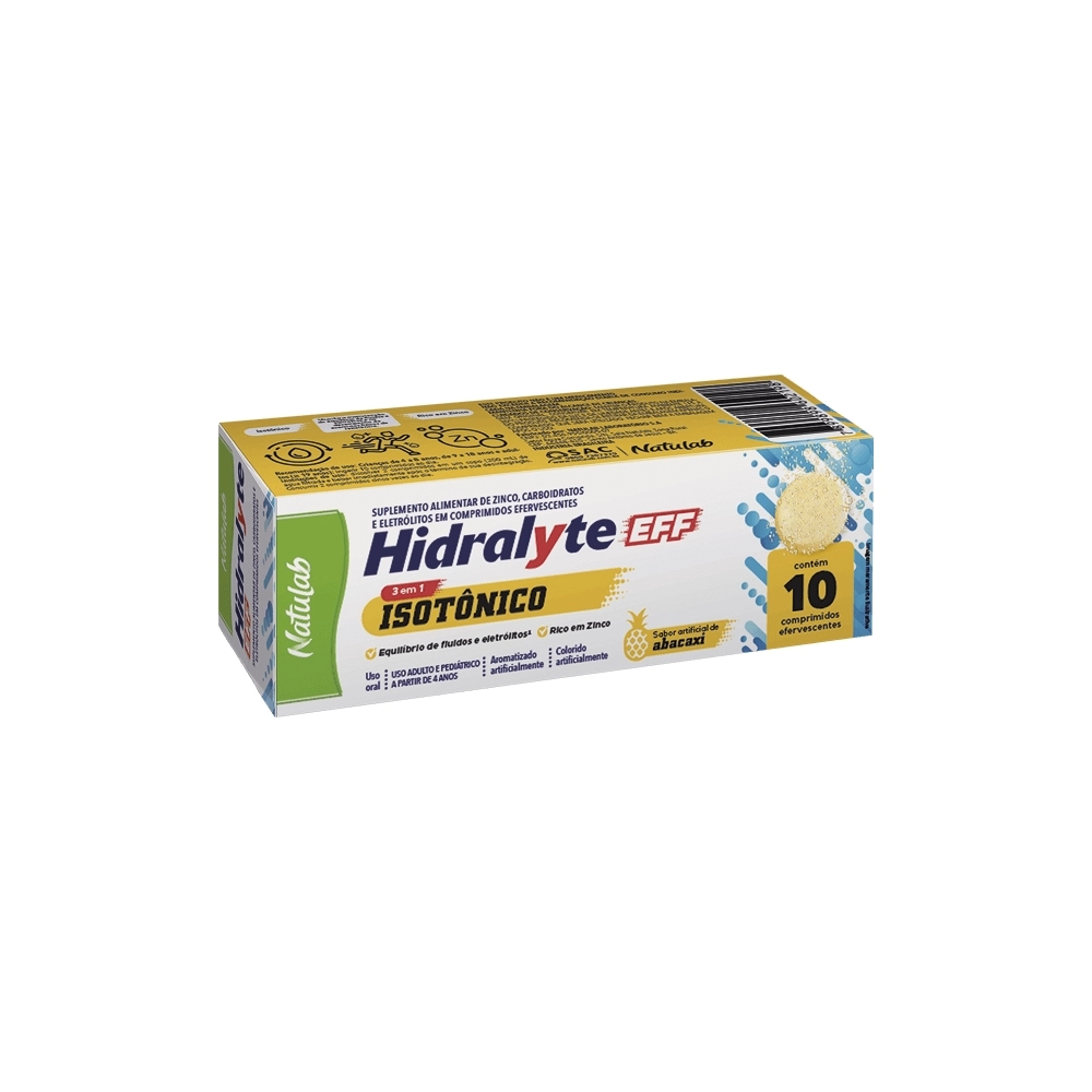 ACESSORIOS>OUTROS>SUPLENTO ALIMENTAR>HIDRALYTE ISOTONICO 3X1 10CPR EFERVESCENTE ABACAXI NATULAB
