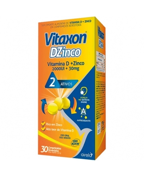 ACESSORIOS>OUTROS>SUPLENTO ALIMENTAR>VITAXON D+ZINCO 2000UI+30MG 30CPR AIRELA