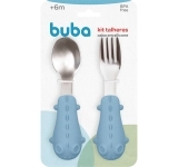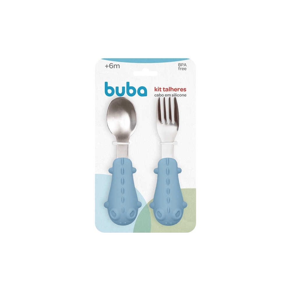 Princ. Ativo: BUBA KIT TALHERES SILICONE E ACO INOX AZUL ( GARFO E COLHER ) + 6M