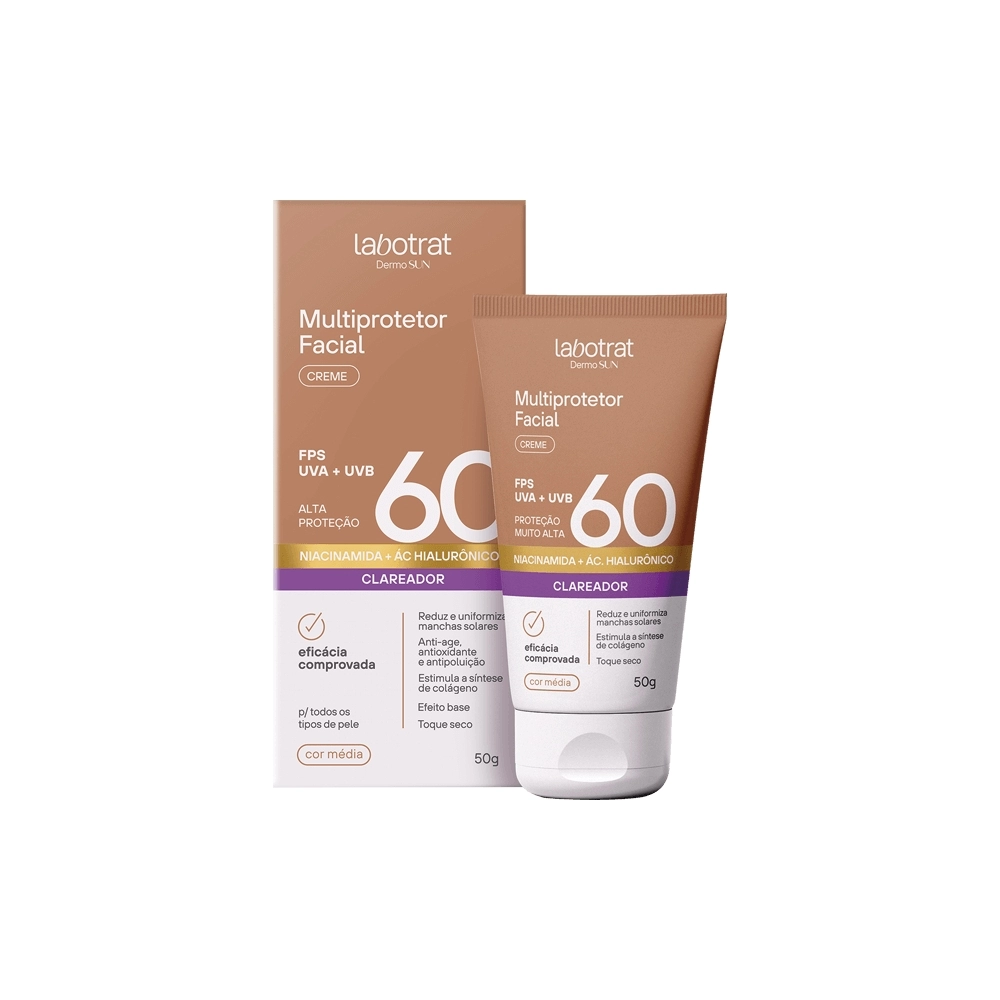 ACESSORIOS>OUTROS>VENDEU GANHOU>MULTIPROTETOR FACIAL CREME FPS60 CLAREADOR BEGE MEDIO 50G LABOTRAT
